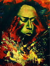 This painting is part of the series "The colors of free Jazz" and is a tribute to the musician Miles Davis. He wants to interpret the colors of his music, the emotions of his melodies.
