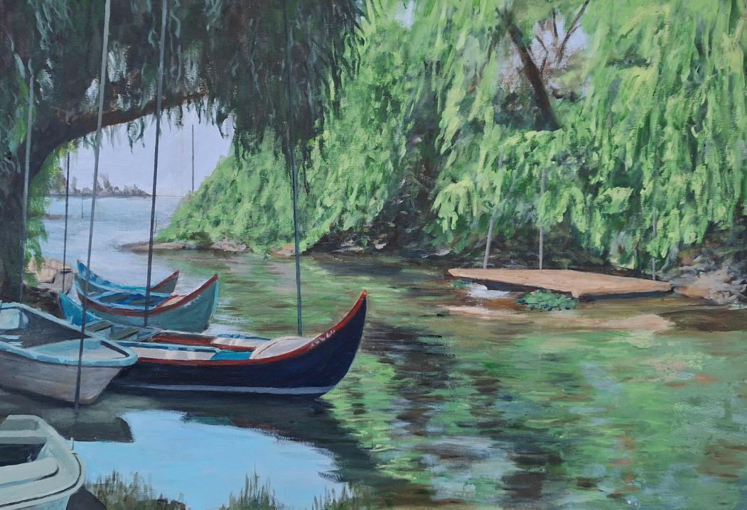 This painting conveys inner peace and a desire to be there. A moment to pause and recentre, in a constant search for balance and beauty. It reveals a contemplation of nature.
