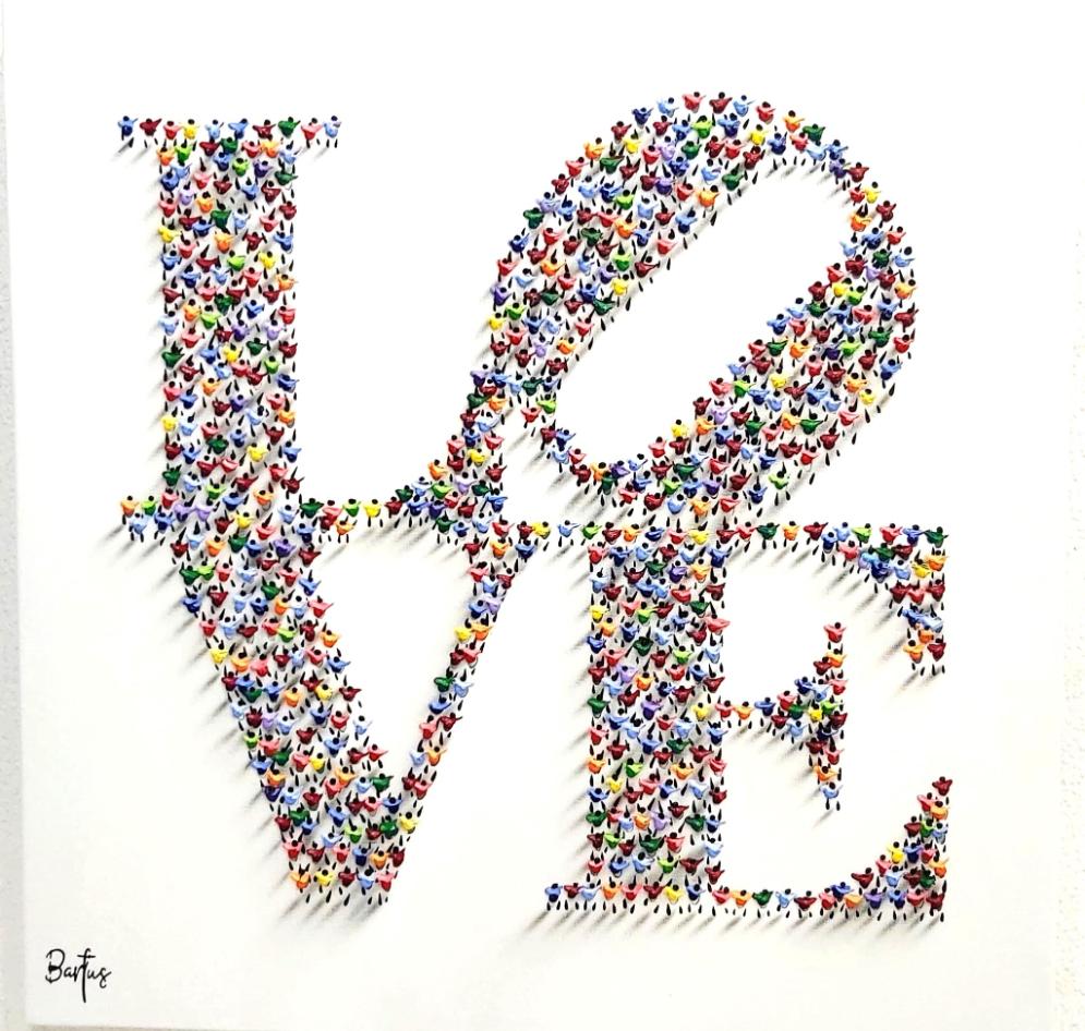 Very creative painting by the spanish author Francisco Bartus with an effect of incredible colors, depth and movements, created both by the 3D drawing and by the moving figures recreating the word Love.