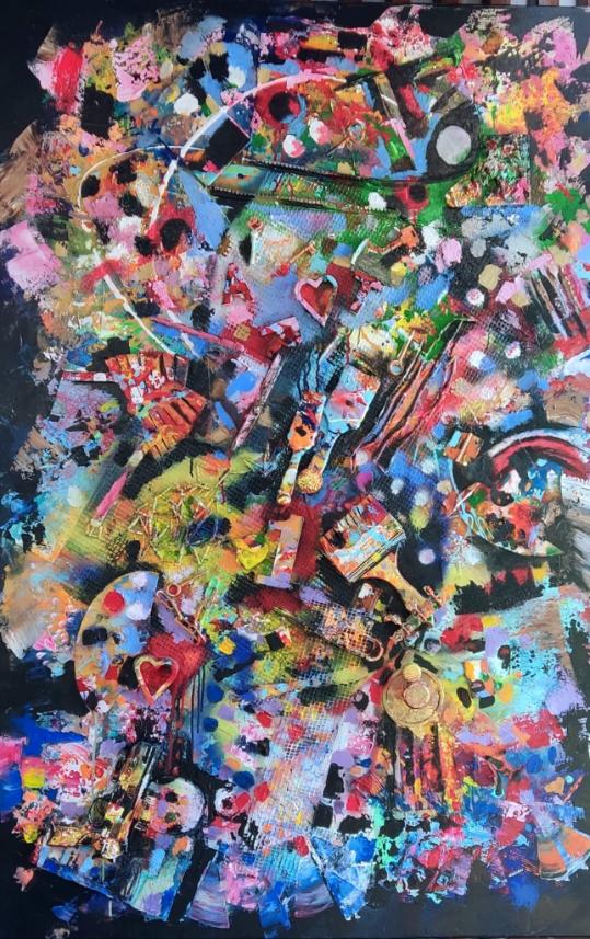This work belongs to the series "30 Years Without Jorge Peixinho". It merges abstraction and geometry, capturing the experimental essence of the Portuguese composer Jorge Peixinho, with collages and strokes evoking the dissonance and innovation of his works. Angular forms intertwine with fluid curves, symbolizing the tension between tradition and