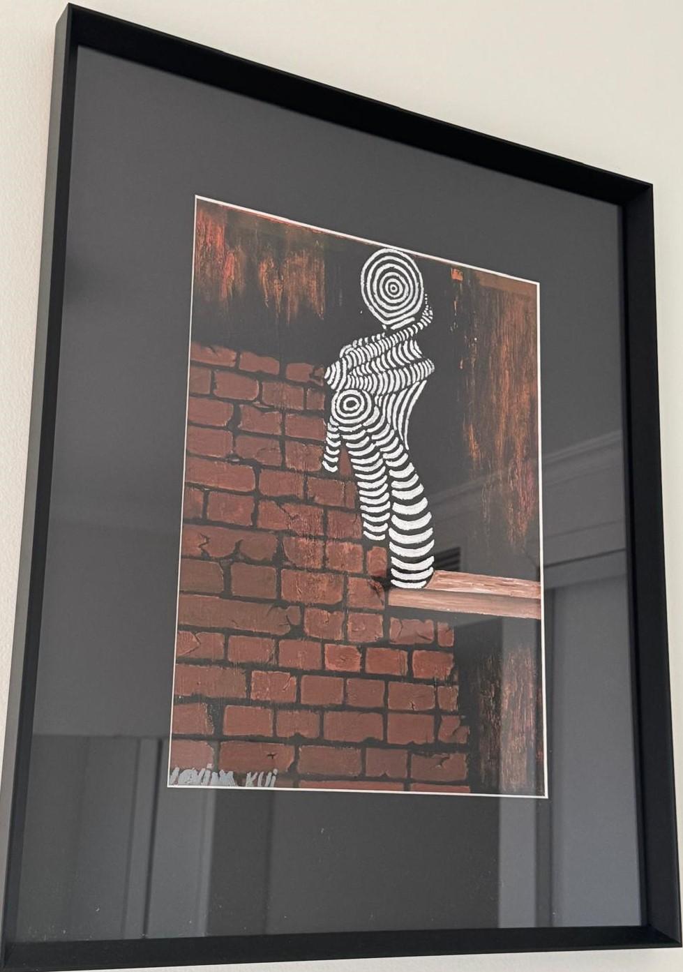 She hides behind a crumbling wall, striving to seem steady as pressure and perfection leave her isolated and overwhelmed.