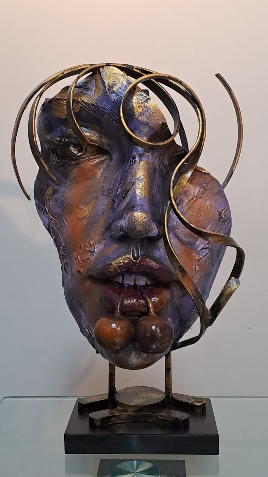 Hans Varela transforms the human face into a visual poem filled with strength and contradiction. With expressive textures and metallic lines that snake like exposed thoughts, the work confronts us with a fragmented yet deeply intimate beauty. The fusion of materials and colors evokes restrained emotions and inner voices, inviting us to hear what is not always spoken. This piece is not just seen; it is felt.